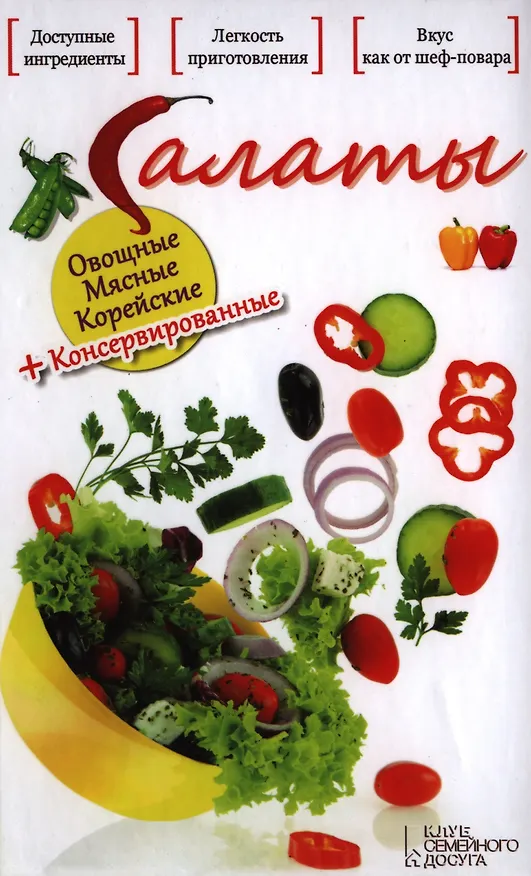 В этой книге вы найдете более 400 рецептов салатов на любой вкус: сытные мясные и легкие овощные, к праздничному застолью и на скорую руку - каждая хозяйка легко отыщет здесь то, что нужно именно ей. Любительницам заготовок впрок пригодятся рецепты консервированных салатов, а тем, кто любит пищу поострее, понравится раздел, посвященный корейским салатам.