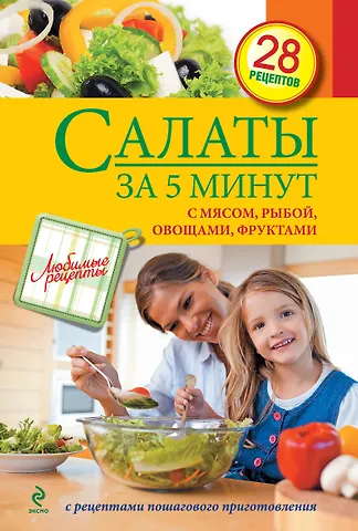 Салаты за 5 минут. С мясом, рыбой, овощами, фруктами. С рецептами пошагового приготовления...