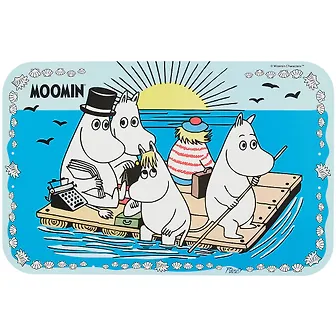 Симпатичная салфетка с милым муми-семейством. Пластик не толстый, но достаточно плотный, можно спокойно ставить разные предметы. Единственное, что не понравилось - вживую рисунок как бы грубоватый, аляповатый, что ли. Может быть, он изначально был небольшого формата, но при увеличении получилось не совсем удачно. Вторая салфетка с муми-троллями (ее мы тоже купили) как-то удачнее смотрится.
