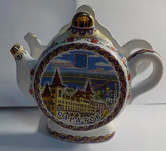 Предлагаем вам салфетницу в форме чайника с изображением города Саратова