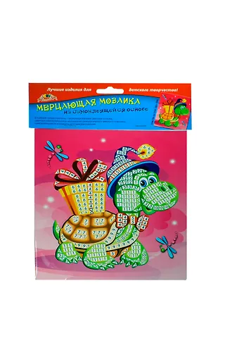 .В наборе представлены: пронумерованная цветная основа, цветная самоклеющаяся мозаика из декоративного мягкого пластика, стразы для декорирования.