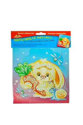 .В наборе представлены: пронумерованная цветная основа, цветная самоклеющаяся мозаика из декоративного мягкого пластика, стразы для декорирования.