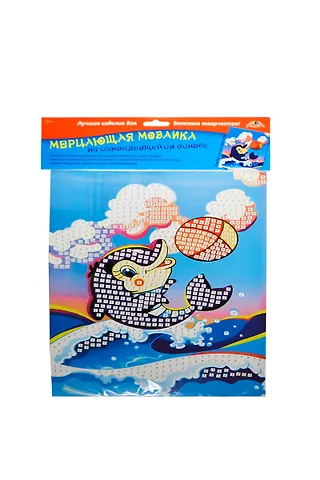 Самокл. мерцающая мозаика из мягк. пластика Дельфин с мячом (C1573-13) (набор для дет. творч.)