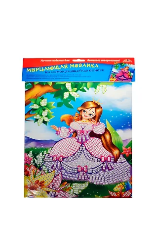 .В наборе представлены: пронумерованная цветная основа, цветная самоклеющаяся мозаика из декоративного мягкого пластика, стразы для декорирования.