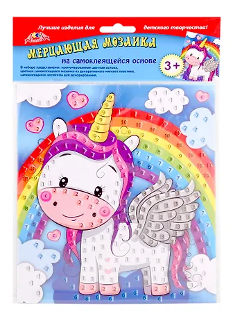 Самоклеящаяся мерцающая мозаика из мягкого пластика, А5, Единорог и радуга