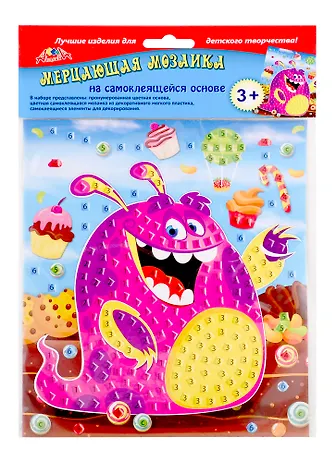 Самоклеящаяся мерцающая мозаика из мягкого пластика, А5, Монстрик