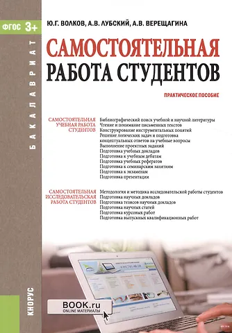 Подробно рассматриваются различные виды самостоятельных работ студентов, раскрывается их содержание, предлагается методика подготовки к ним. Изучив материал данного учебного пособия студенты смогут овладеть навыками работы с литературой, методами ее поиска и анализа: самостоятельно выполнять проектные задания, готовиться к семинарским занятиям, экзаменам: писать учебные, научные доклады, статьи, тезисы: выступать в "дебатах" и дискуссиях и аргументировано отстаивать свои позиции, а также многое другое, что по своей сути направлено на формирование креативной, мыслящей и активной личности, способной стать подлинным актором социально-профессиональных отношений после окончания обучения в высшей