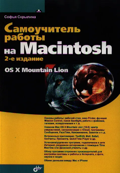 Рассмотрены основные приемы работы на компьютере Macintosh в операционной системе Mac OS X Mountain Lion. Описана работа с объектами Finder, использование Mission Control и Launchpad, настройка параметров системы, установка/удаление программ, подключение к сети Интернет, резервное копирование и др. Приведено сравнение рабочего стола OS X и Windows. Рассмотрены основные приложения, входящие в состав OS X: текстовый редактор TextEdit, почтовый клиент Mail, браузер Safari, адресная книга Контакты, медиапроигрыватели QuickTime Player и iTunes, фотоменеджер Просмотр и др. Особое внимание уделено взаимодействию iPhone с компьютером Macintosh. Представлен обзор приложений от сторонних производителе