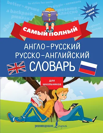 Самый полный англо-русский русско-английский словарь для школьников содержит 16 000 слов и отличается насыщенностью грамматической информацией, такой необходимой в процессе изучения иностранного языка. В англо-русской части при заглавных словах даются их грамматические формы: у существительных - форма множественного числа, у прилагательных - формы сравнительной и превосходной степеней сравнения, у глаголов - формы 3-го лица единственного числа, причастия настоящего времени, формы прошедшего времени и причастия прошедшего времени. Где необходимо, даны грамматические комментарии, касающиеся значений слов и их употребления. Ко многим статьям даны иллюстрации. Словарь предназначен для учащихся с