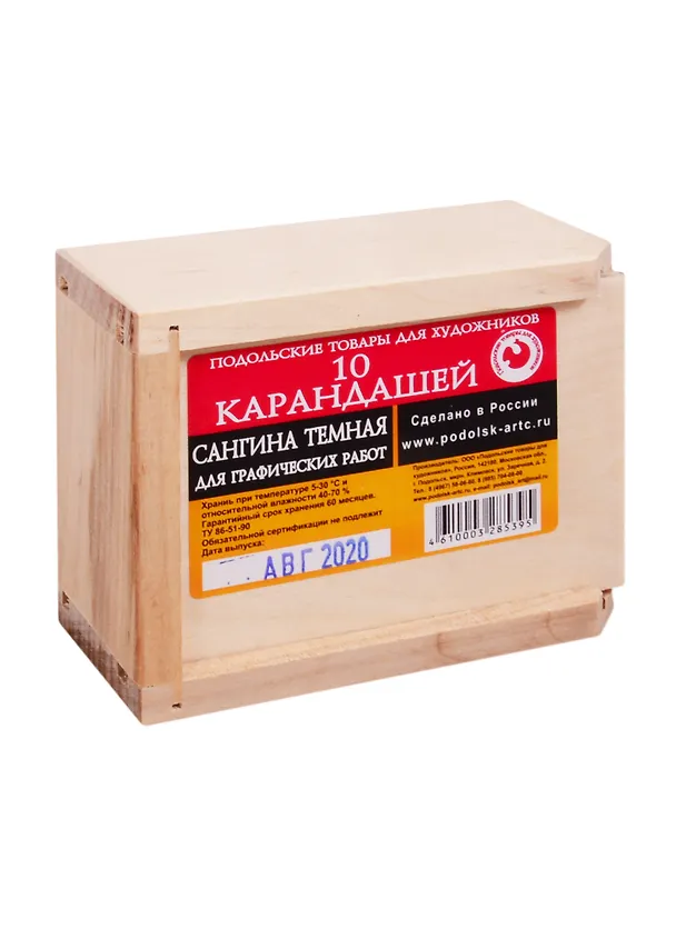 Сангина темная в деревянном пенале 10 карандашей, Подольск Арт-Центр