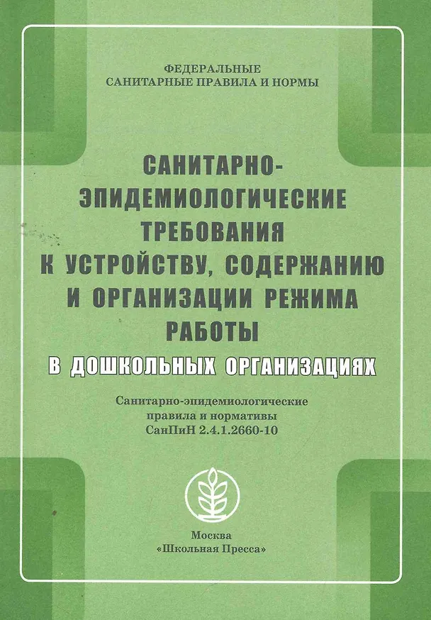 Санитарно-эпидемиологические требования к устройству, содержанию и организации режима работы в дошкольных организациях. Санитарно-эпидемиологические правила и нормативы СанПиН 2.4.1.2660-10 / (мягк) (Дошкольное воспитание и обучение) (Школьная пресса)