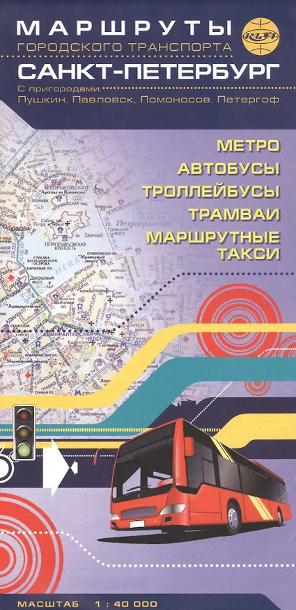 Санкт-Петербург с пригородами: Пушкин, Павловск, Ломоносов, Петергоф. Маршруты городского транспорта. Масштаб 1:40 000