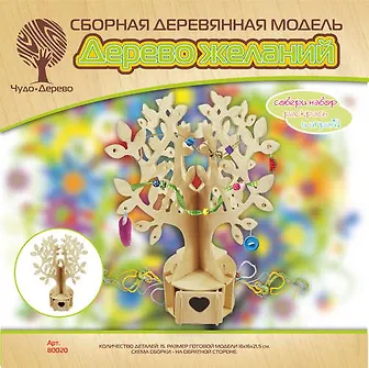 Красивое, необычное, изящное. Детали хорошо отточены, гладкая фанера, есть дырочки на листьях для подвесок, имеется шкатулочка, в которой можно положить кольца. Снимается всё с листа легко.