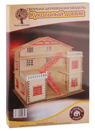 PH023 Кукольный домик (25/6) (ИгрДом) (сбор. дер. модель) (88 дет.) (36,5х37,3х37,3см) (3+) (коробка) (Чудо-Дерево)