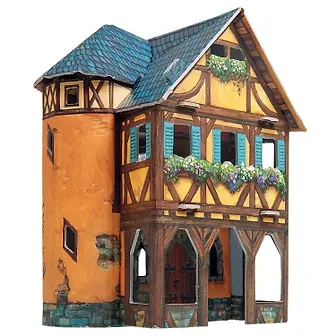 Один из конструкторов серии "Средневековье" от компании Умная бумага. Мастерская собирается из толстого "переплетного" картона. Для сборки не нужны клей и ножницы. Детали предварительно "выдавливаются" из основы. Здания из такого картона легко собирать, а готовая постройка устойчива и крепка, и может использоваться для сюжетных игр. Большим плюсом собранной модели мастерской является возможность попасть внутрь. Задняя стенка и крыша открываются. Здание трехэтажное. Внутри все раскрашено. В состав набора входят картонные фигурки людей, одетых в средневековые одежды. Собрав несколько зданий серии Средневековье, можно построить целый город. Количество деталей: 19 Сложность - легкая Размер собра
