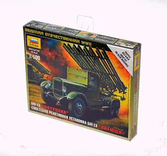 Легендарная советская реактивная установка БМ-13 "Катюша". "Орган Сталина" наводил ужас на немецкие войска, с жутким звуком разлетались колонны противника от взрывов реактивных снарядов. Звезда, вопрос вам, почему такая легенда отсутствует в масштабе 1/72? Есть в 35 и в 100 масштабе, и как всегда обделили фанатов 72 машстаба. Тем не менее, в масштабе 1/100 качество детализации очень хорошее. Интересно выполнена сборка деталек. Как обычно, сборные модели в 100 масштабе можно собрать без клея, но всё же его использовать. Очень хороший набор за свои деньги