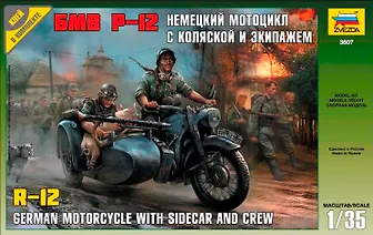 Сборная модель ЗВЕЗДА, Мотоцикл, БМВ, Р-12, с коляской и экипажем, 1:35