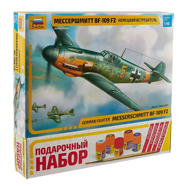 Сборная модель ЗВЕЗДА, Самолет, Немецкий истребитель Мессершмит BF-109 F2", 1:48"