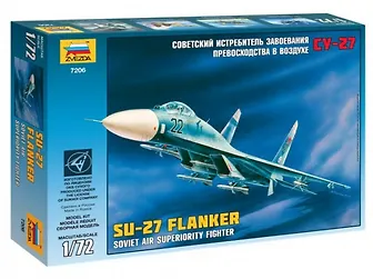 Сборная модель истребитель СУ-27 компании Звезда 7206 прекрасно детализирована и состоит из 106 деталей. Полностью собранная модель СУ-27 имеет длину 31,4 см и выполнена в масштабе 1:72.
