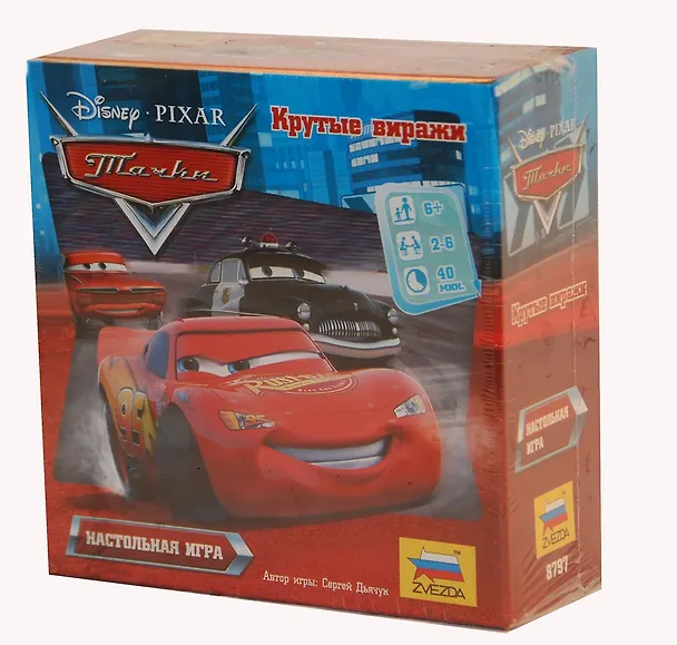 .Герои мультфильма "Тачки" соскучились по скорости и снова спешат выйти на старт! Маквин и его друзья не могут жить без скорости. Они организовали новую гонку, чтобы вновь посоревноваться на виражах. Выбирайте героя, смело давите на газ…- и вперед! - обгонять соперников и, как настоящий гонщик, продумывать каждый вираж на непростой трассе. Игровое поле состоит из 16 элементов - трасса каждый раз будет разной! Состав игры: Элементы гоночной трассы - 16 шт. Игровые карточки - 48 шт. Фишки героев - 6 шт. Кубик "1-6" - 1 шт. Правила игры.
