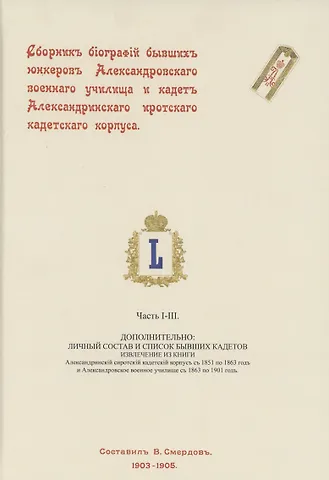 Часть I-III. Дополнительно: личный состав и список бывших кадетов извлечение из книги - Александринский сиротский кадетский корпус с 1851 по 1863 год и Александровское военное училище с 1863 по 1901 год.