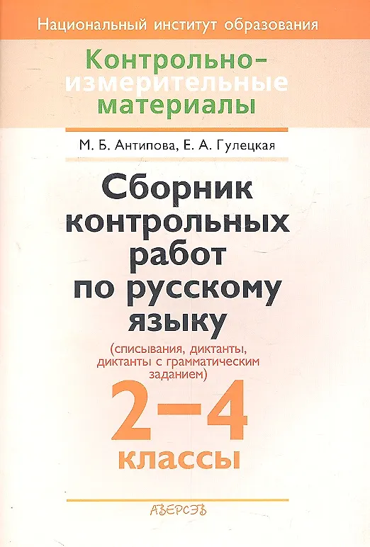 Сборник контрольных работ по русскому языку (списывания, диктанты, диктанты с грамматическим заданием). 2-4 классы. Пособие для учителей учреждений общего среднего образования с русским языком обучения.