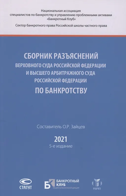 В настоящий сборник включены все актуальные действующие разъяснения Верховного Суда Российской Федерации и Высшего Арбитражного Суда Российской Федерации по банкротству по состоянию на 1 июля 2021 г., данные применительно к законам о банкротстве 2002, 1998 и 1992 гг. Сборник предназначен для специалистов, занимающихся банкротством (судей, арбитражных управляющих, сотрудников уполномоченного органа, регулирующего органа или саморегулируемой организации арбитражных управляющих, юристов кредиторов и т.д.), а также может быть использован в преподавательской деятельности и для самостоятельного изучения проблем банкротства.