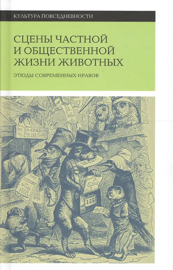 «Сцены частной и общественной жизни животных» (1842) — знаменитый сборник, для которого тексты написали известные французские писатели, а иллюстрации выполнил замечательный рисовальщик Гран-виль. Сквозной сюжет книги — история о том, как звери собрались на свою Генеральную ассамблею и решили освободиться от власти человека, а для этого — рассказать каждый свою историю. Читателя ждут монологи Зайца-конформиста и Медведя-байрониста, Крокодила-эпи-курейца и Пуделя, сделавшегося театральным критиком, английской Кошки, осужденной за супружескую измену, и французской Кошки, обманутой Котом-изменником. Имена и некоторые приметы у персонажей звериные, а проблемы, разумеется, — человеческие, те самые
