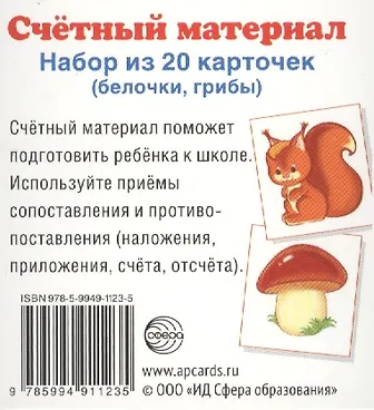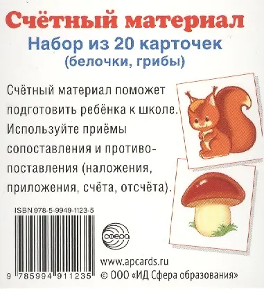 Счетный материал. Набор из 20 карточек. Белочки, грибы