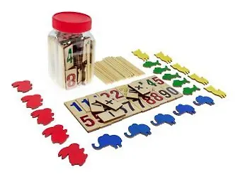 Счетный материал "Животные" состоит из ста деревянных элементов, среди которых карточки с цифрами и знаками, фигурки различных животных и счетные палочки. Такой набор позволит ребенку освоить основы счета, а также поможет научиться выполнять такие арифметические действия, как сложение и вычитание.