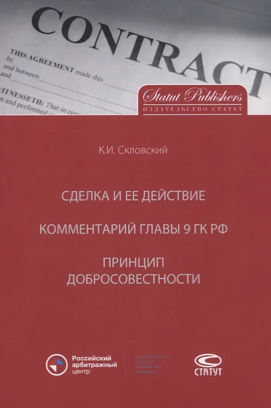 Предлагаемая читателю книга написана одним из ведущих специалистов в области гражданского права, доктором юридических наук, адвокатом К. Скловским (автор является также профессором Исследовательского центра частного права им. С. С. Алексеева, профессором-исследователем Высшей школы экономики, арбитром Российского арбитражного центра (третейского суда). Книга охватывает три связанные между собой темы. Это очерк о понятии сделки, в котором автор анализирует наиболее важные аспекты понятия сделки и выдвигает ряд новаторских положений, имеющих как теоретическое, так и практическое значение. Ранее книга о сделке и ее действии уже публиковалась и вызвала значительный интерес. Здесь представлено че