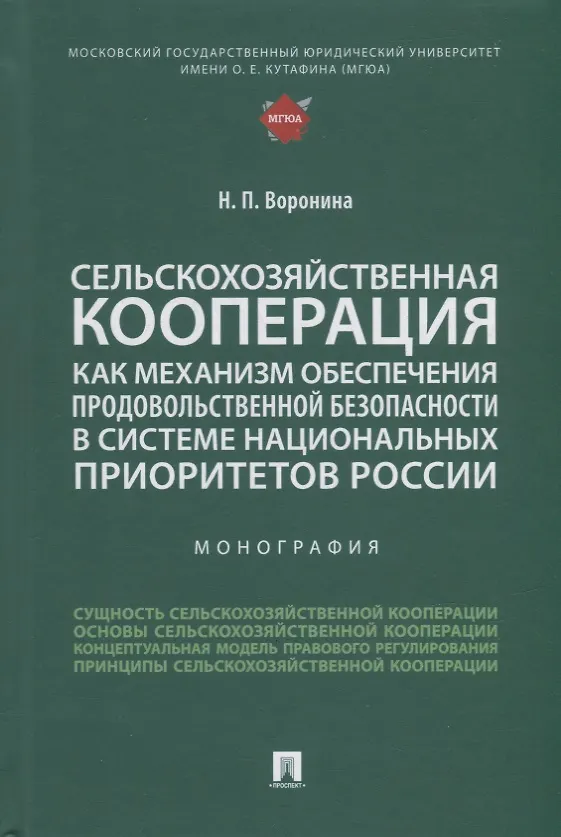 В предлагаемой монографии рассмотрены вопросы стратегического планирования и правового регулирования сельскохозяйственной кооперации в Российской Федерации как механизма обеспечения продовольственной безопасности в системе стратегических национальных приоритетов. Раскрыты особенности стратегического планирования в сфере обеспечения продовольственной безопасности и развития сельского хозяйства. Рассмотрены социально-экономическое значение сельскохозяйственной кооперации в современных условиях развития Российского государства, ее теоретические основы, эволюционное становление и развитие правового регулирования сельскохозяйственной кооперации, сформулирована модель правового регулирования сельс