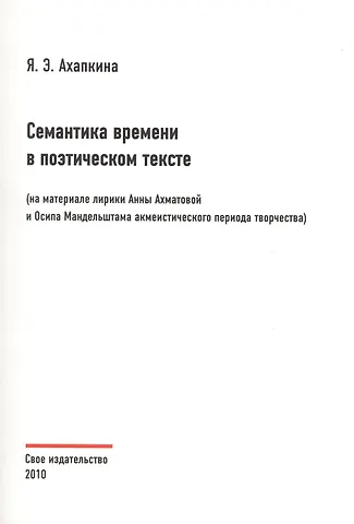 Семантика времени в поэтическом тексте (на материале лирики Анны Ахматовой и Осипа Мандельштама акмеистического периода творчества)