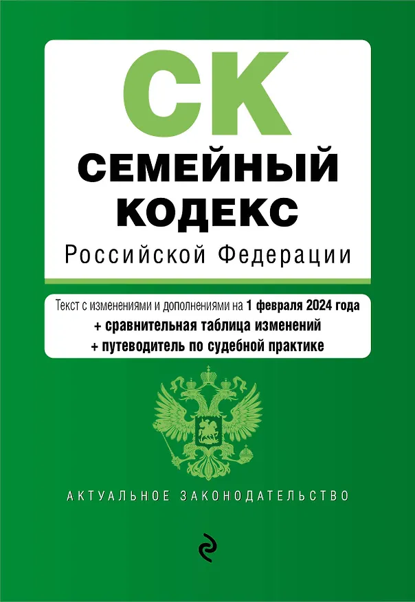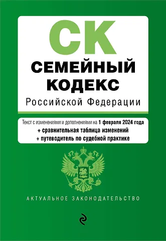 Настоящее издание содержит текст Семейного кодекса Российской Федерации с изменениями и дополнениями на 1 февраля 2024 года с удобной навигацией и таблицей изменений. Если есть изменения, вступающие в силу позднее, то вместе с редакцией нормы, действующей на эту дату, приводится норма в новой редакции и указывается дата, с которой она вступает в силу.