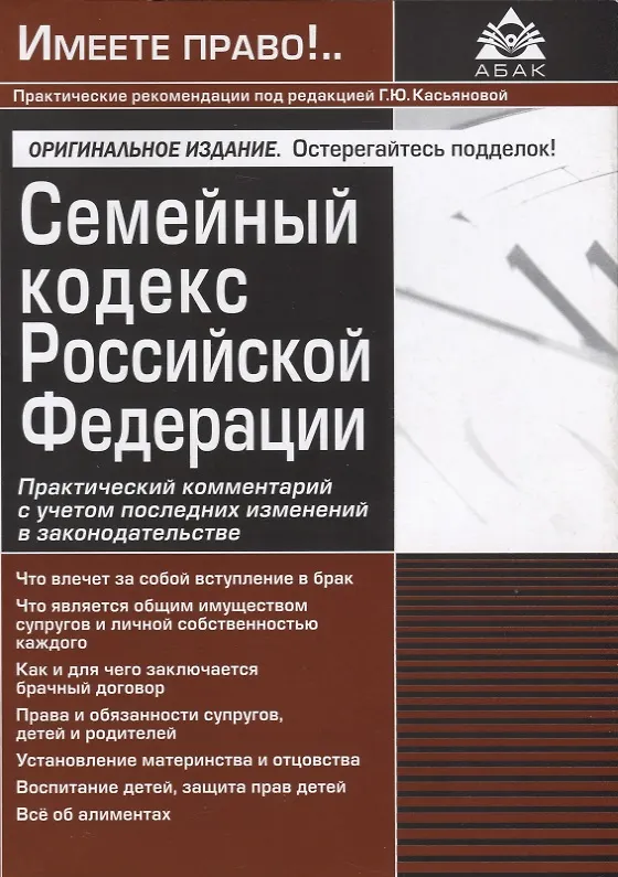 Галина Касьянова «Семейный кодекс Российской Федерации. Практический комментарий с учетом последних изменений в законодательстве. 2-е изд.» и выбрать удобный способ его получения: самовывоз, доставка курьером