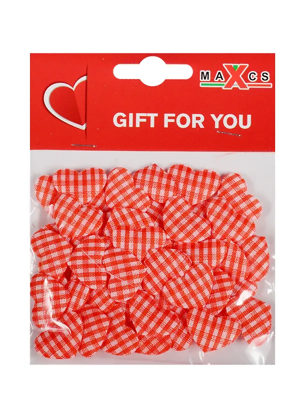 Сердечки в клетку красно-белые 2 см, 50 шт в пакете с хедером (11-00094-28)