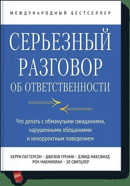Серьезный разговор об ответственности Что делать с обманутыми ожиданиями, нарушенными обещаниями и некорректным поведением. Наконец то и у нас ее перевели. Книга способна повысить эффективность работы и коллектива и личности. Да и вообще на пользу личности идет- сейчас и у людей и у целый компаний напрочь оно отсутствует, что несет убытки морального и материального плана. Надо, наконец, задуматься об этом- на дворе двадцать первый век.
