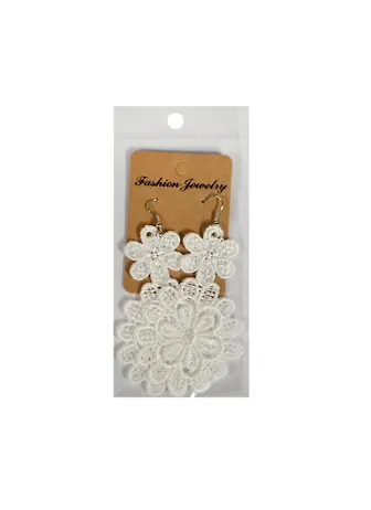 Серьги с кружевом длинные на подложке двойной цветок (11000201) (белые) (упаковка)