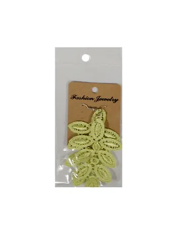 Серьги с кружевом длинные на подложке Листики (11000204) (салатовый) (упаковка)
