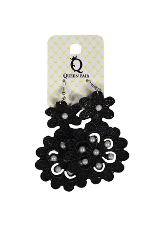 Серьги текстильные Два цветочка (299239) (цв. черный) (упаковка)