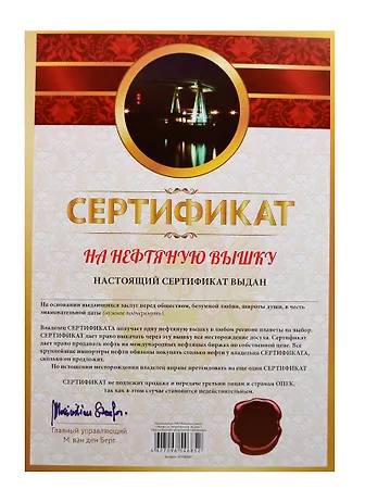 Сертификат на нефтяную вышку (SP0000007) (Мастер)