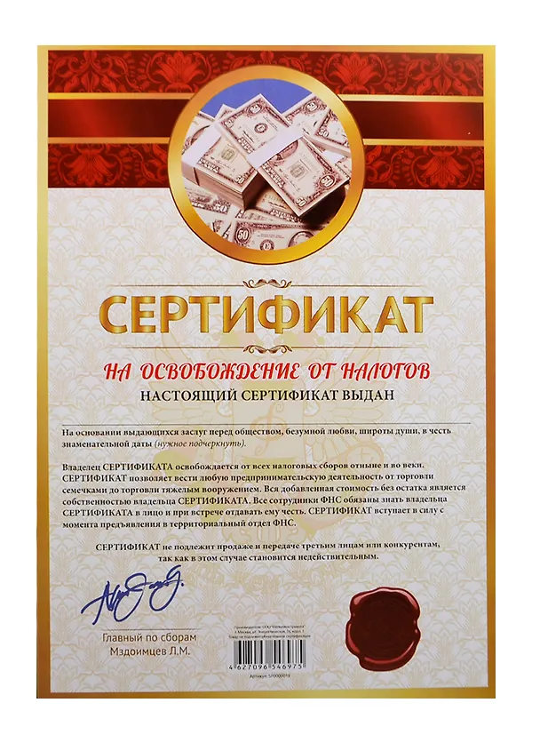 Приготовиться к празднику с юмором поможет шуточный сертификат. .