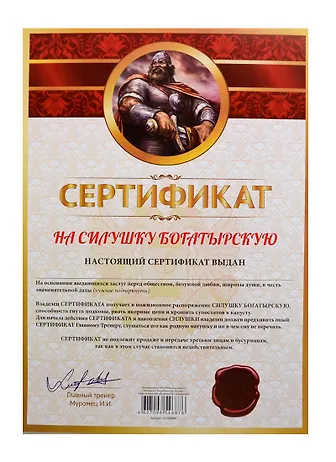 Сертификат на силушку богатырскую (SP0000009) (Мастер)