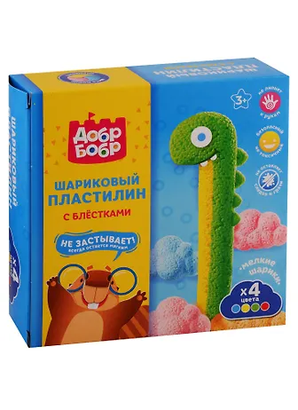 В наборе 4 цвета: красный, желтый, зеленый, синий. Мелкозернистый шариковый пластилин с блестками ДобрБобр очень легкий и пластичный материал, не высыхает на воздухе. Занятие лепкой развивают мелкую моторику рук. Шариковый пластилин - это необычная масса для лепки, состоящая из мельчайших пенопластовых шариков и связующего их вещества на основе глицерина. А так как этот вид пластилина рассчитан для детей от 3-х лет, то и производится он только из безопасных компонентов, которые не причинят вреда даже малышам, которые в силу возраста любят все тащить в рот. Шариковый пластилин очень легкий, воздушный и удобен тем, что совсем не прилипает к рукам. Но при этом он хорошо держит форму, скрывая вс