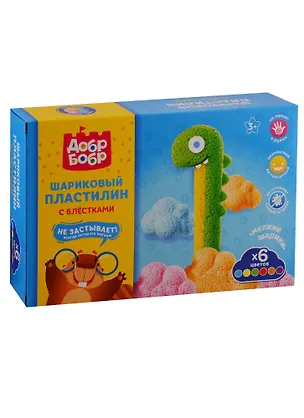 В наборе 6 цветов: красный, желтый, оранжевый, зеленый, синий, фиолетовый. Мелкозернистый шариковый пластилин с блестками ДобрБобр очень легкий и пластичный материал, не высыхает на воздухе. Занятие лепкой развивают мелкую моторику рук. Шариковый пластилин - это необычная масса для лепки, состоящая из мельчайших пенопластовых шариков и связующего их вещества на основе глицерина. А так как этот вид пластилина рассчитан для детей от 3-х лет, то и производится он только из безопасных компонентов, которые не причинят вреда даже малышам, которые в силу возраста любят все тащить в рот. Шариковый пластилин очень легкий, воздушный и удобен тем, что совсем не прилипает к рукам. Но при этом он хорошо