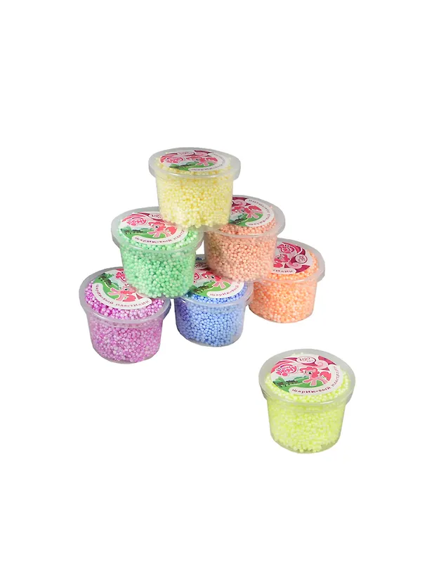 Шариковый пластилин - необычный пластилин состоит из маленьких шариков, напоминающих искрящиеся бусинки, соединенных тончайшими клеевыми нитями… Шариковый пластилин очень легкий, воздушный и совсем не липнет к рукам. Цвета легко смешиваются друг с другом, образуя разноцветную шариковую массу. Готовые поделки из шарикового пластилина высыхают на воздухе в течение 24 часов. Массу для лепки и шариковый пластилин можно комбинировать.