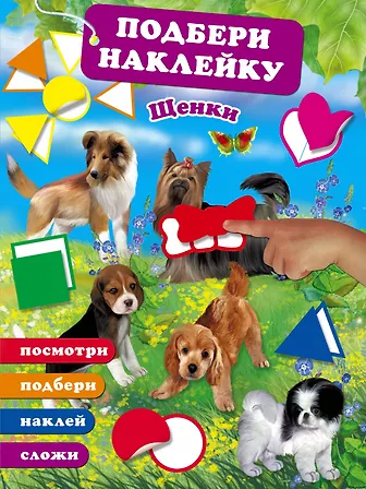 Отличная серия развивающих пособий для малышей. Мы их приобрели в возрасте полутора лет, примерно. Ребенок был счастлив. Большой формат, крупные яркие изображения разных пород собак с подписьми для родителей (что это за порода). Нужно подбирать наклейки по форме и цвету и наклеивать в нужные места. Где-то нужно повернуть и наклеить. 2 страницы с наклейками - в начале и в конце книги. Есть дополнительные наклейки по краям этих листов, которыми можно дополнить историю или даже построить свой сюжет. Можно воображать, рассказывать, обсуждать, развивать мелкую моторику. Конкретно в этой книге изображения немного размытые. Возможно только нам такая попалась