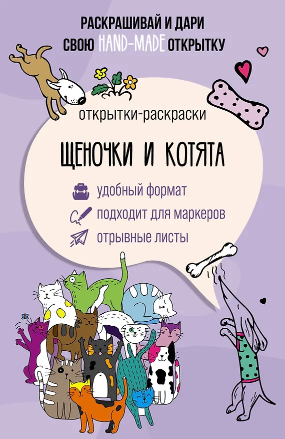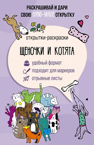 Щеночки и котята. Открытка-раскраска
