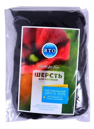 Шерсть RTO не линяет при валянии и последующей стирке, легко расчесывается и разделяется на пряди. Готовые изделия из шерсти RTO хорошо поддаются покраске и тонированию. Благодаря удобной упаковке можно рассмотреть шерсть внимательнее и убедится в ее качестве, а также подобрать необходимый цвет из широкой цветовой гаммы.