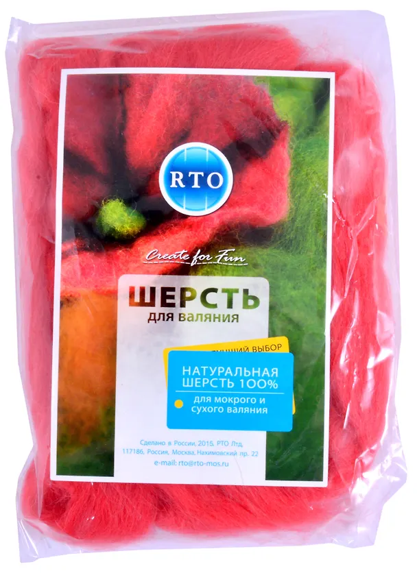 Шерсть RTO не линяет при валянии и последующей стирке, легко расчесывается и разделяется на пряди. Готовые изделия из шерсти RTO хорошо поддаются покраске и тонированию. Благодаря удобной упаковке можно рассмотреть шерсть внимательнее и убедится в ее качестве, а также подобрать необходимый цвет из широкой цветовой гаммы.